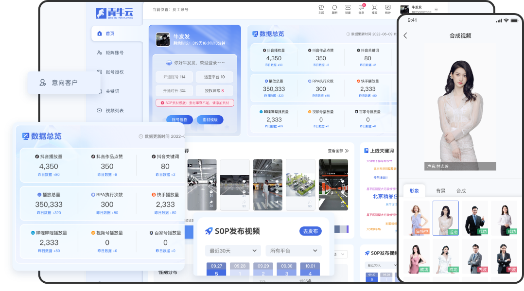 青牛云短視頻獲客系統、九牛數據短視頻解決方案,幫助我們這個傳統類型企業進行了數字化變革。