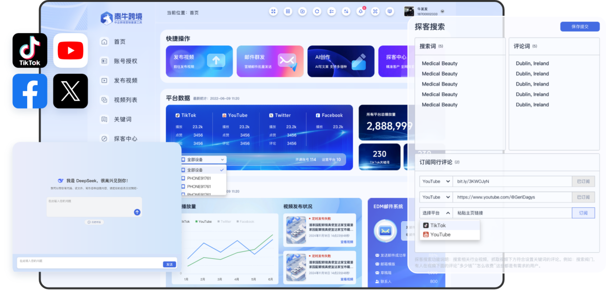 TikTok、YouTube、Twitter、Facebook等平臺PC端一鍵發布